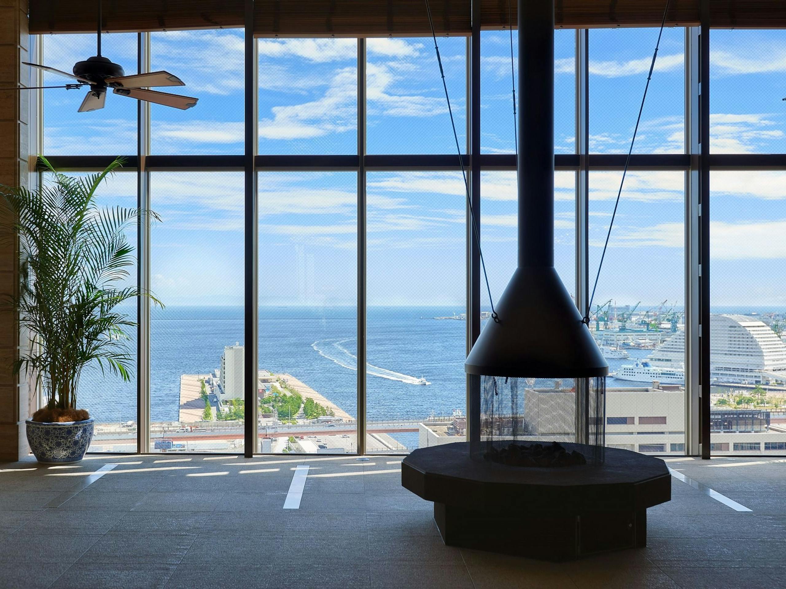 ホテルの最上階にあるロビー&レストランからは神戸港や六甲山、神戸の街並みを眺められます。