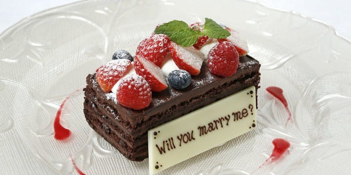 プロポーズプランは特製ホールケーキ付き。メッセージを添えて想いを伝えられます。