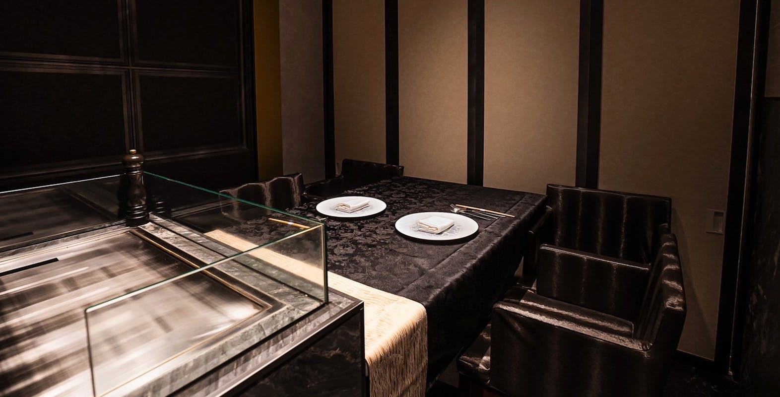 1部屋ずつにある専用の鉄板焼き台で、シェフの鉄板パフォーマンスを目の前で楽しめます。